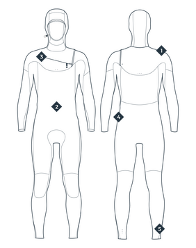 Les différents panneaux de néoprène sont collés puis “Blind-stitched” (l’aiguille ne traverse pas entièrement l’épaisseur de néoprène). Le SD2 TAPE est ensuite soudé à chaud pour terminer la couture. Ce procédé innovant apporte une meilleure durabilité, étanchéité et plus de flexibilité.